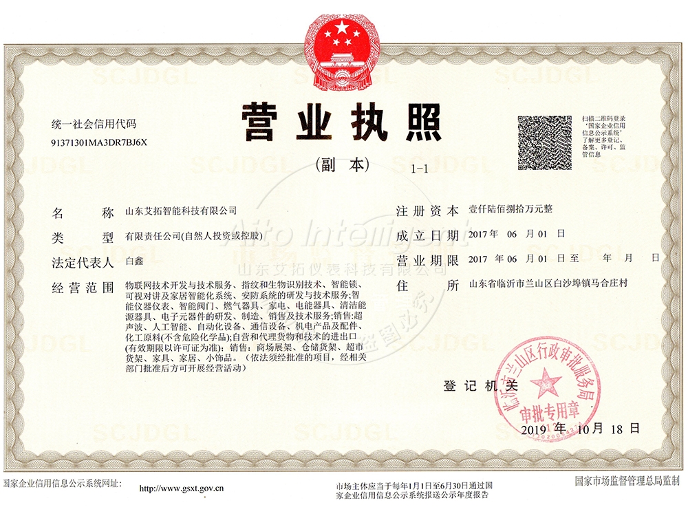 山東艾拓智能科技有限公司是以設(shè)計(jì)、研發(fā)、生產(chǎn)、銷售、服務(wù)為一體的綜合性新型企業(yè),我們一直致力于生產(chǎn)智能水表、智能電表、智能燃?xì)獗?、超聲波熱量表等四大系?0余款產(chǎn)品,公司注冊(cè)資金1680萬元,占地6000余平。
